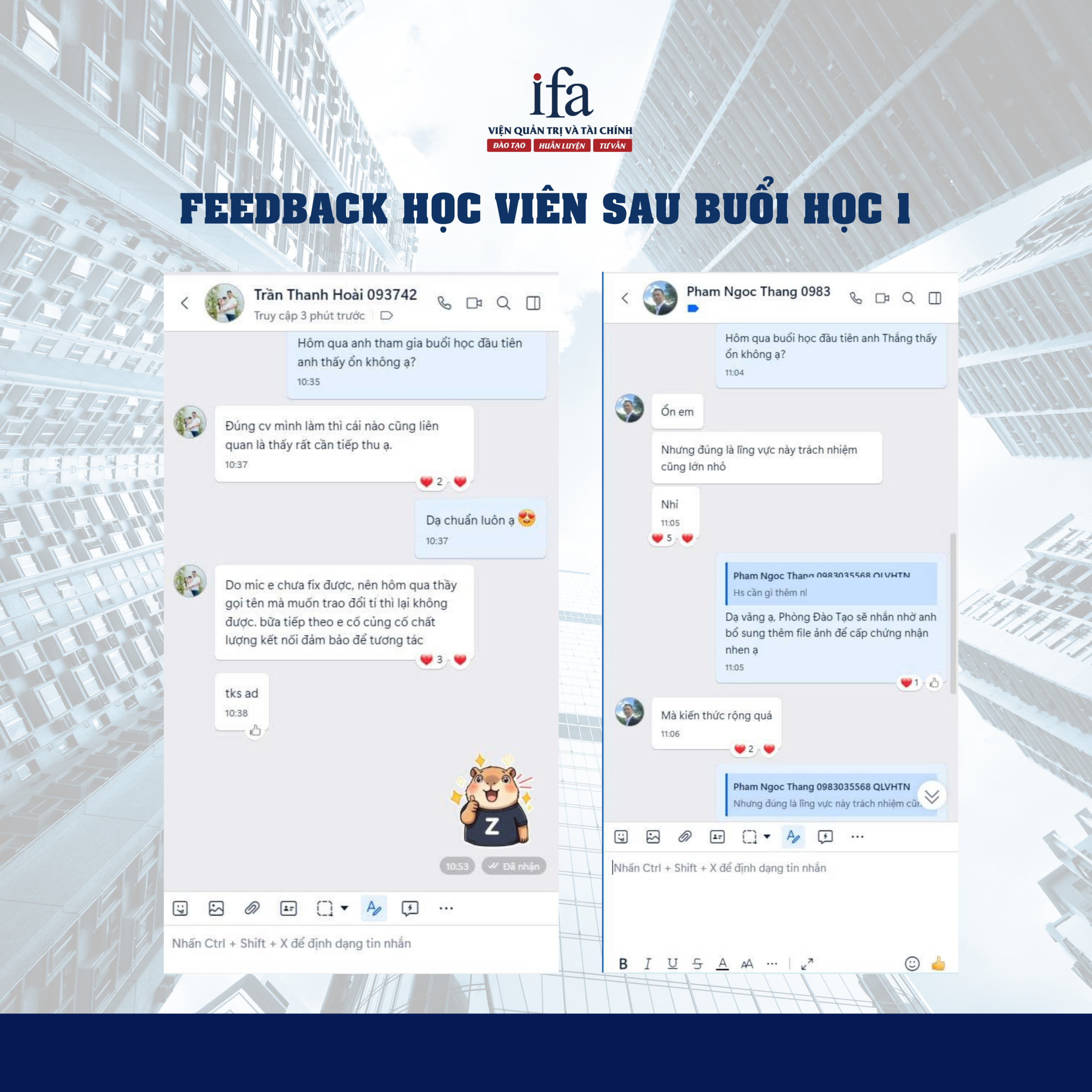 → Có. IFA hỗ trợ tư vấn chuyên môn và cập nhật kiến thức sau khóa học.